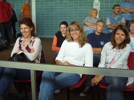 Die mitgereisten Fans starrten ganz gebannt auf den Zwischenstand... wirklich! Die Kathi war zwischenzeitlich auf dem 11.Platz! Suuuper! |