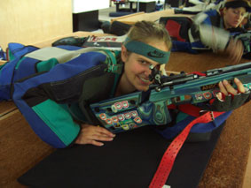 | Die Verena hat es zum zweiten Mal geschafft: Mit guter Leistung bei der Bayrischen Meisterschaft 2006 konnte sie sich in der Disziplin KK 3x20 Sport (542 Ringe) zur Deutschen Meisterschaft am 20. August 2006 ebenfalls in München qualifizieren (Limit:538). Nach eigenen Angaben sei dies zwar nicht ihre Lieblingsdisziplin, aber teilnehmen wollte sie dann doch, wenn sie sich schon qualifiziert hat. | ![]() |