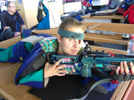 Verena einen Schritt weiter: Sie bereitet sich mit Trockenanschlägen auf den Wttkampf vor. Hier als erstes im Liegendanschlag. Noch schaut sie recht locker und entspannt!! Hoffentlich bleibt das so! |